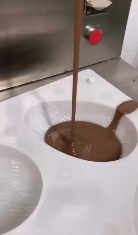 - Temperagem feita de maneira profissional, através de maquinário industrial, próprio para dar o choque térmico que o chocolate nobre necessita. Além do “snap” delicioso que a gente adora escutar ao morder, também resulta em cascas lindas e resistentes.